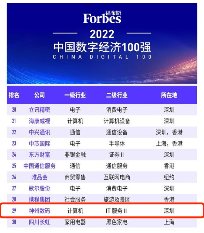 8月20日,“福布斯2022中国数字经济100强榜单”在江西上饶发布。作为数字中国的探索者、实践者和赋能者,hg57体育数码凭借杰出的表现,位列百强榜单第29位,计算机类第3位,再度获得权威机构认可。